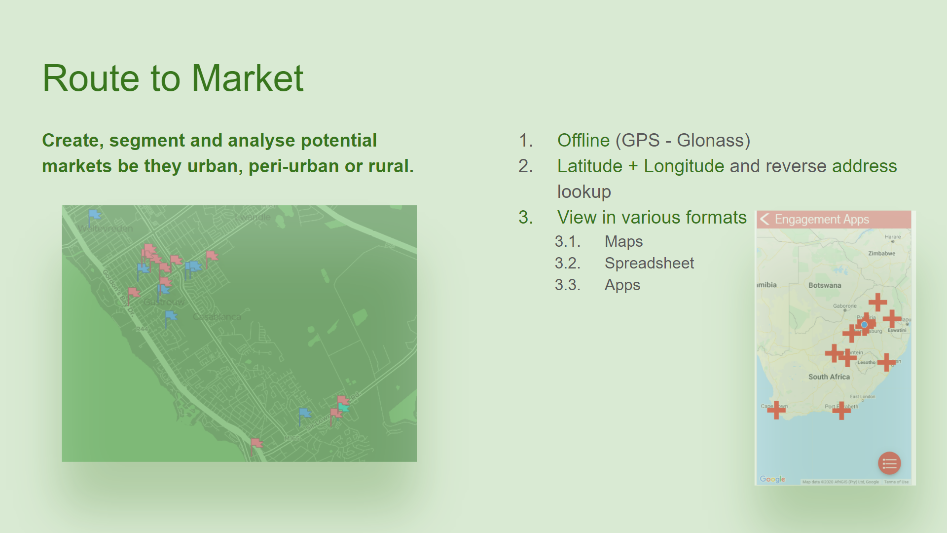 Create, segment and analyse potential markets be they urban, peri-urban or rural.
